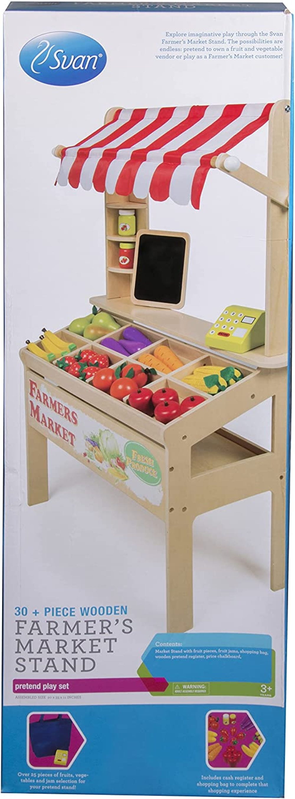 Wooden Farmers Market Stand Kids Playroom Furniture Grocery Stand For Pretend Play 30 Pieces Includes Fruit Chalkboard And Cash Register Walmart Com